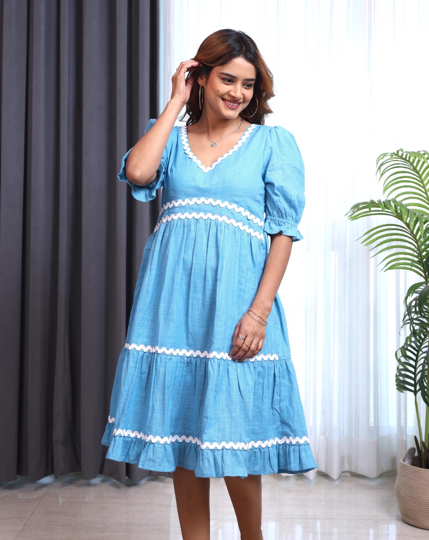 Teal Blue Cotton Short Dress