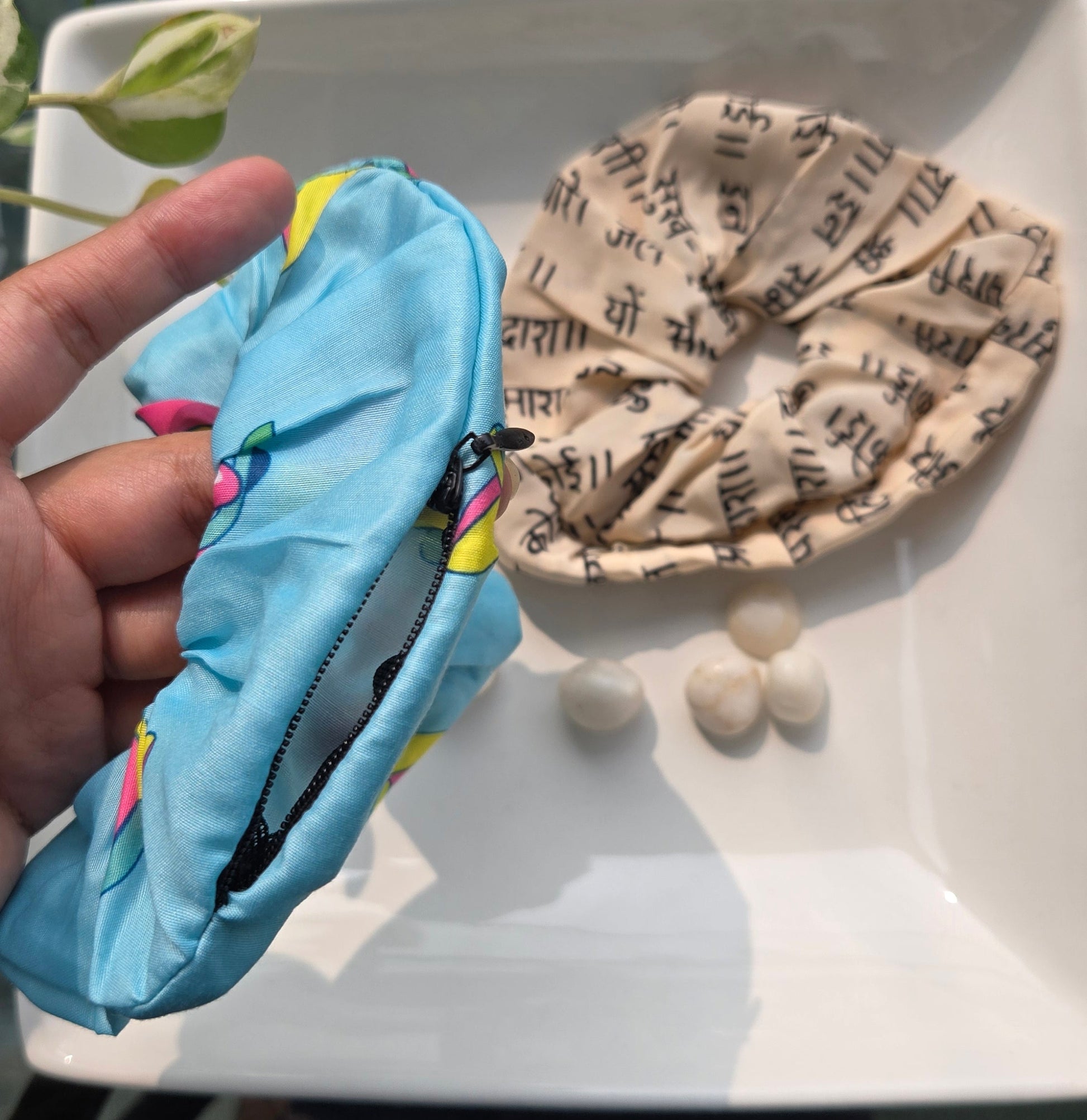 Whether you’re stepping out for a walk, travelling light, or just want hands-free ease — this scrunchie has your back (and your bun).